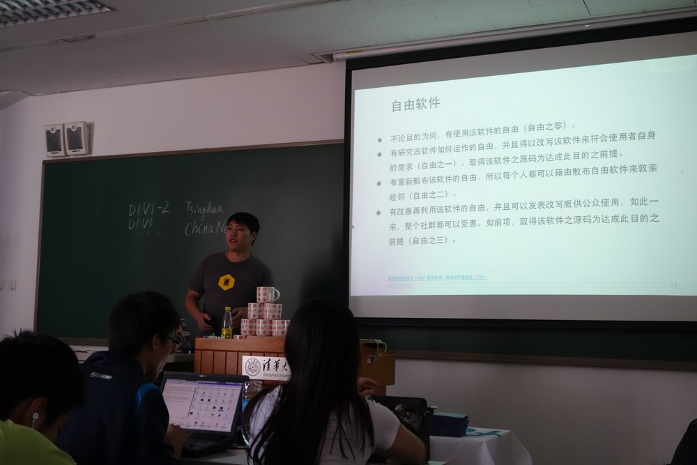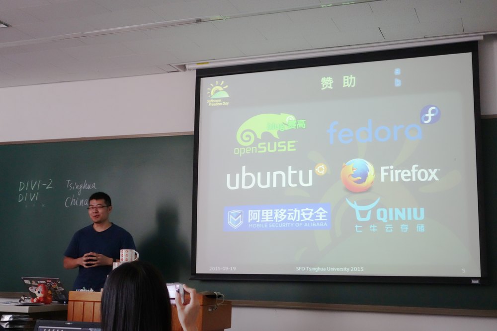 金秋送爽,艳阳高照,2015 年 9 月 19 日下午两点,2015软件自由日清华站在清华大学新水利馆欢乐开场。本次活动 由 TUNA 协会和北京 GNU/Linux 用户组联合举办,且得到了 Ubuntu 社区、Fedora 社区、openSUSE 社区、Firefox 社区、 阿里移动安全和七牛云存储等赞助方的大力支持,赞助方为此次活动提供了非常丰厚的礼品。