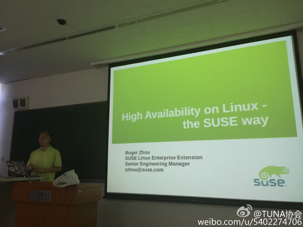 SUSE 高级开发经理 Roger Zhou 的演讲介绍了高可用度的概念,高可用度的硬件设备以及 SUSE 的各种高可用技术架构,以及社区的工作。 All open-source in the whole stack。问答环节参与度很高,提问的参与者获得了 SUSE 提供的 T 恤、U盘等纪念品。 slide